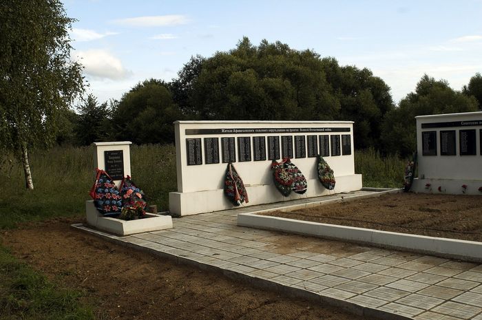 Волченки, памятник односельчанам и братские могилы (похоже, уже перезахоронения, причем сравнительно недавние):