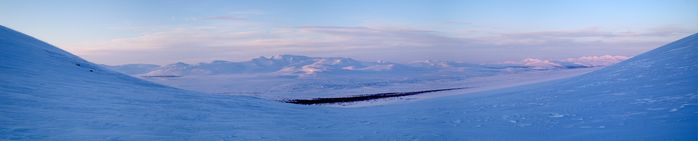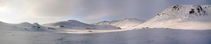 Вид с горы Шлем на северную часть хребта и станцию Полярный Урал.