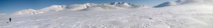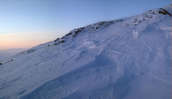 Спускаемся от Степ-Рузи к Ельцу. Снег выглажен и укатан ветрами.